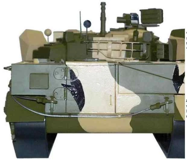 - вбудованого динамічного захисту нового покоління Ніж-2, здатною протистояти кумулятивним боєприпасам з тандемною бойовою частиною [4];