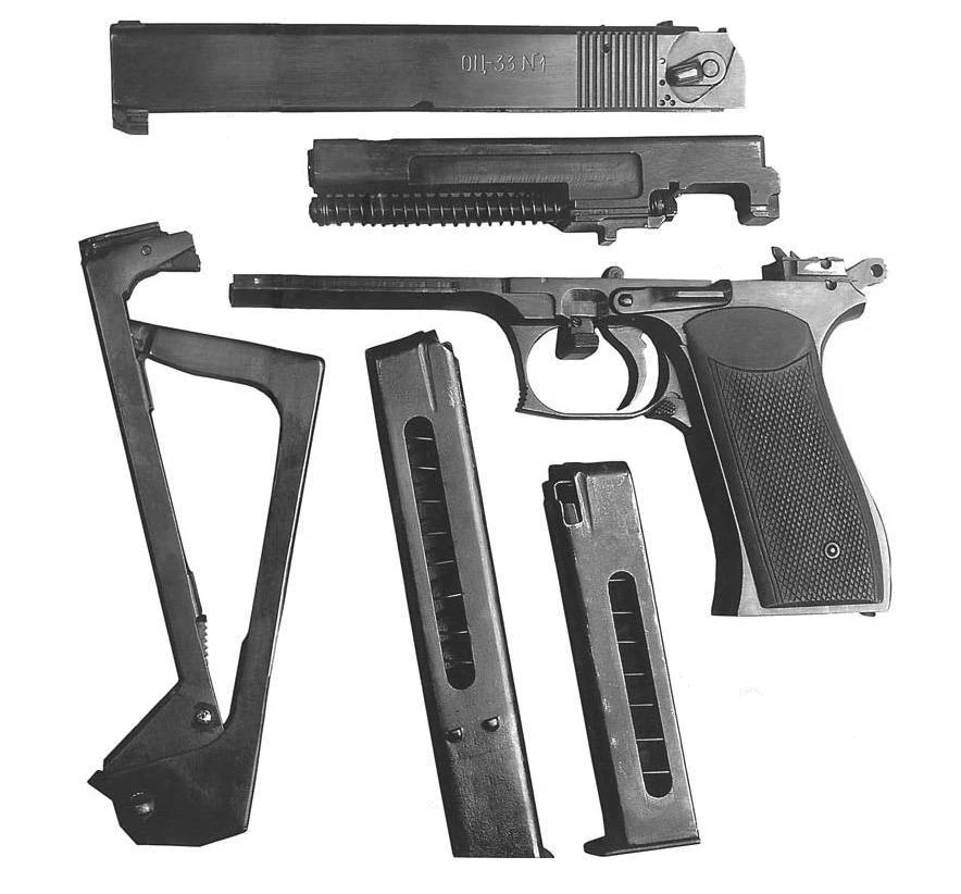 Незважаючи на деякі недоліки, легко зрозумілі "молодістю" конструкції, пістолет досить зручний і простий в обігу, прикладист. Розбирання і зборка здійснюються без спеціальних пристосувань. При стрільбі короткими чергами на дистанцію двадцять п'ять метрів всі кулі легко укладаються в стандартну грудну мішень.